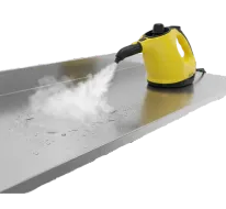 High-temperature steam kills bacteria and removes grease without chemicals or residue left behind.